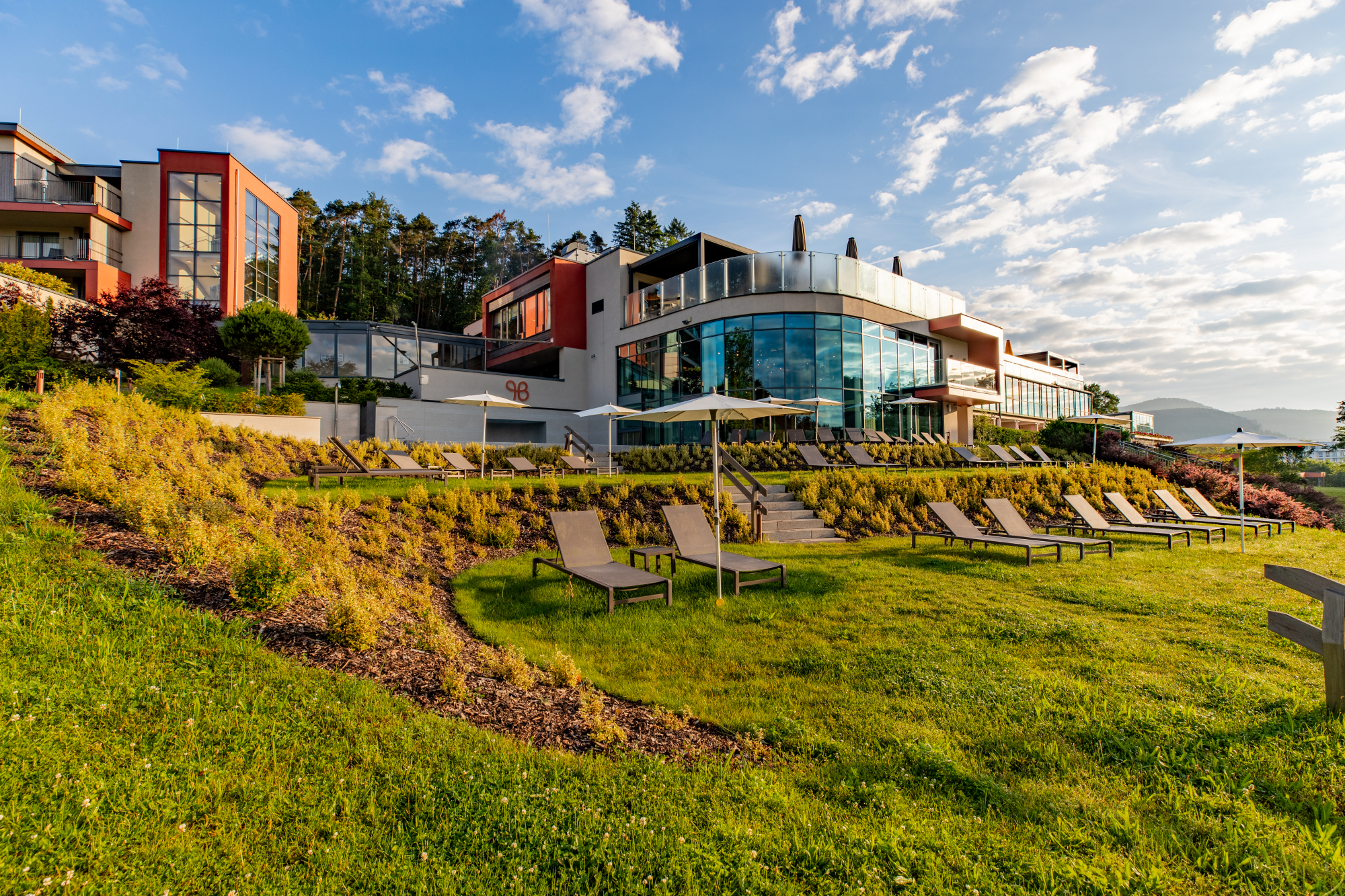 Das Pfalzblick Wald Spa Resort befindet sich in Dahn im Süden von Rheinland-Pfalz, im Herzen des Dahner Felsenlands. Die Region liegt im UNESCO-Biosphärenreservat Pfälzerwald-Nordvogesen und ist bekannt für ihre markanten Buntsandsteinformationen, ausgedehnten Wälder und ein gut ausgebautes Wegenetz für Wanderer und Radfahrer. Das 4-Sterne-Superior-Haus liegt ruhig am Ortsrand, umgeben von einer großzügigen Gartenanlage mit altem Baumbestand und Blick auf Felsen und historische Burgruinen.