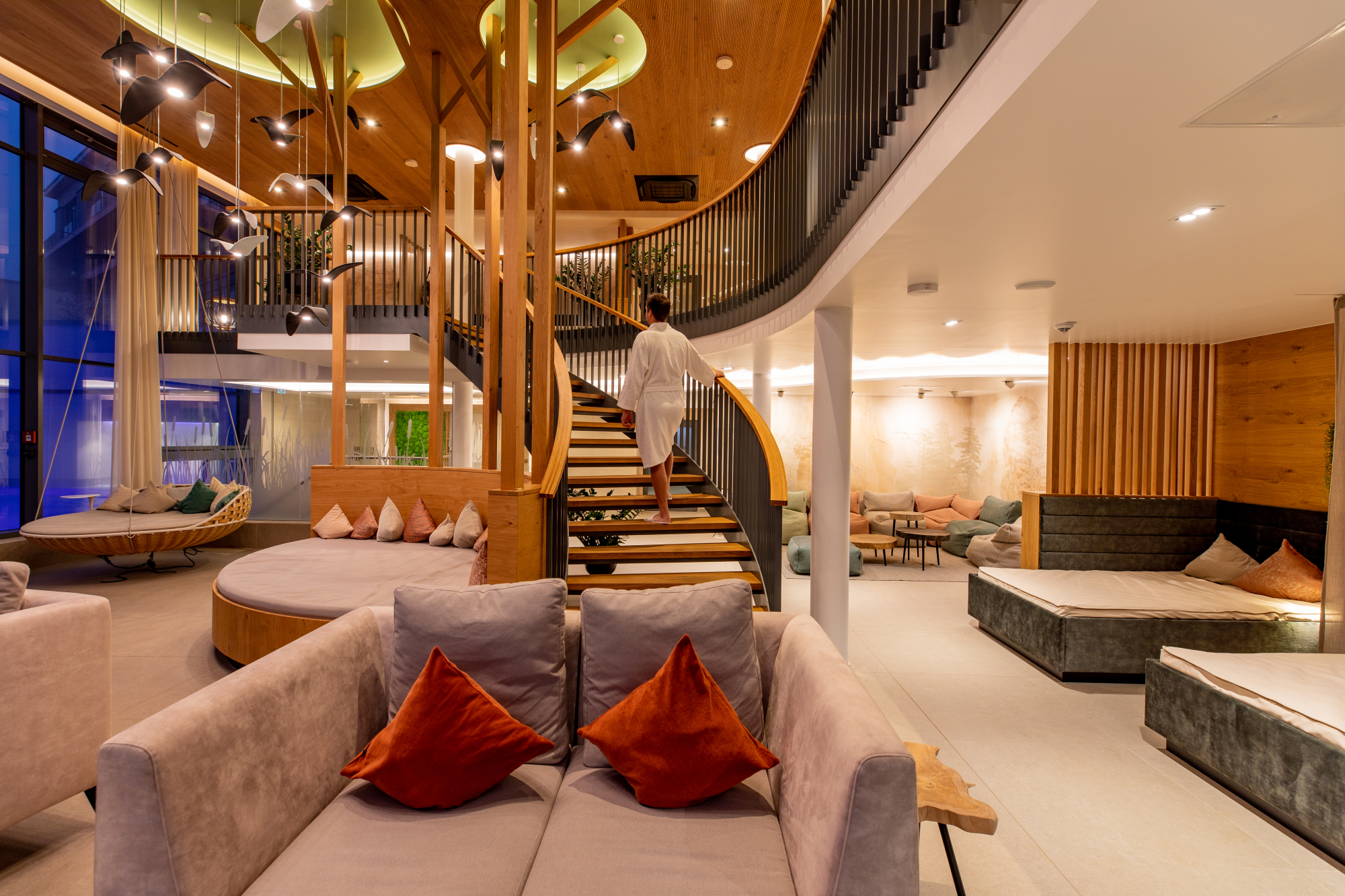 Für Erholungssuchende ab 16 Jahren ist das Adults-only Wald Spa ein echtes Highlight. Auf einer separaten Sauna-Insel warten drei Erlebnissaunen, ein Eisbrunnen, Erlebnisduschen, ein direkter Zugang zum Naturbadeteich und gemütliche Wasserbetten unter duftendem Holzgebälk.