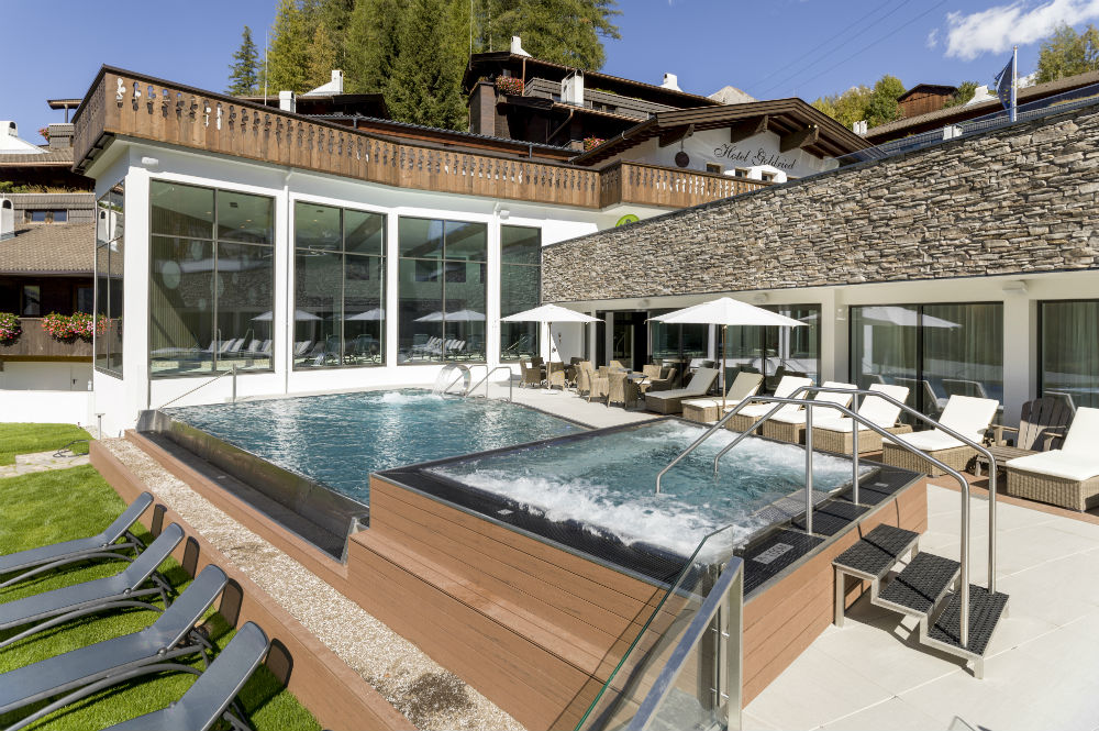 Inmitten der atemberaubenden Kulisse der alpinen Landschaft entstand der neue, moderne und luxuriöse Spa- und Wellnessbereich im Hotel Goldried. Genießen Sie vom neuen Außen-Infinity-Pool mit Jacuzzi den imposanten Ausblick auf die umliegende Bergwelt. Aber auch das neue Hallenbad mit Spa-, Wellness- und Sauna-Abteilung lädt zum Entspannen und Relaxen ein. Der Saunabereich bieten vier Arten von Sauna an: Infrarotsauna, Bio-Sauna, Finnische Sauna und das Dampfbad. Im Innenpoolbereich befindet sich auch ein kleines Schwimmbad speziell für Kinder. Der Ruheraum bietet eine schöne Atmosphäre zum Entspannen und Relaxen. Warme Beleuchtung, bequeme Ruhebetten, dazu ein erfrischendes Getränk aus der Lounge - das ist Wellness im Hotel Goldried. Eine Wohltat für Körper, Geist und Seele.